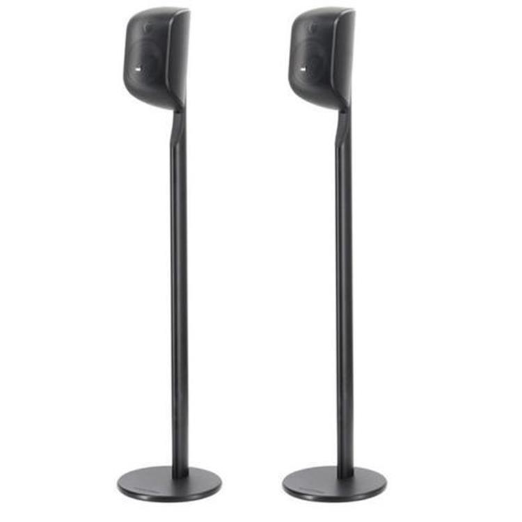 Сателлиты B&W M-1 обладают расширенной диаграммой направленности. Диапазон частот простирается до 23 кГц. Модели оснащены настольными подставками, к которым крепится стержень, имеющий шаровой шарнир в месте соединения с корпусом, что позволяет поворачивать колонку вверх, а также на 90 градусов в сторону, превращая в полноценный громкоговоритель центрального канала. Довольно необычно организована подводка акустического кабеля, которая напоминает крепление шнура питания в настольной лампе. В углублении резиновой накладки подставки спрятан монтажный ключ, с помощью которого ее можно легко отсоединить. В комплект входят кронштейны для настенного крепления. Опционально доступны высокие стойки.