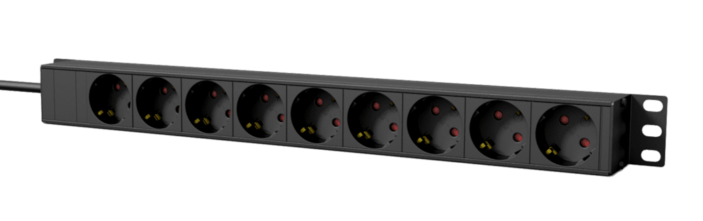 Общая высота покрывает пространство одной 19-дюймовой стойки, что позволяет устанавливать его в любой 19-дюймовый корпус или стойку для оборудования. Благодаря поворотным боковым ушкам также возможен настенный монтаж. Входные соединения выполняются с помощью фиксированного 2,5-метрового соединительного кабеля с вилкой Schuko (CEE 7/7), а выходные разъемы немецкого стандарта (тип F - CEE 7/4) позволяют подавать питание на девять устройств. Точка заземления корпуса предназначена для простого подключения стойки/корпуса к заземлению сети, как того требуют правила техники безопасности.
