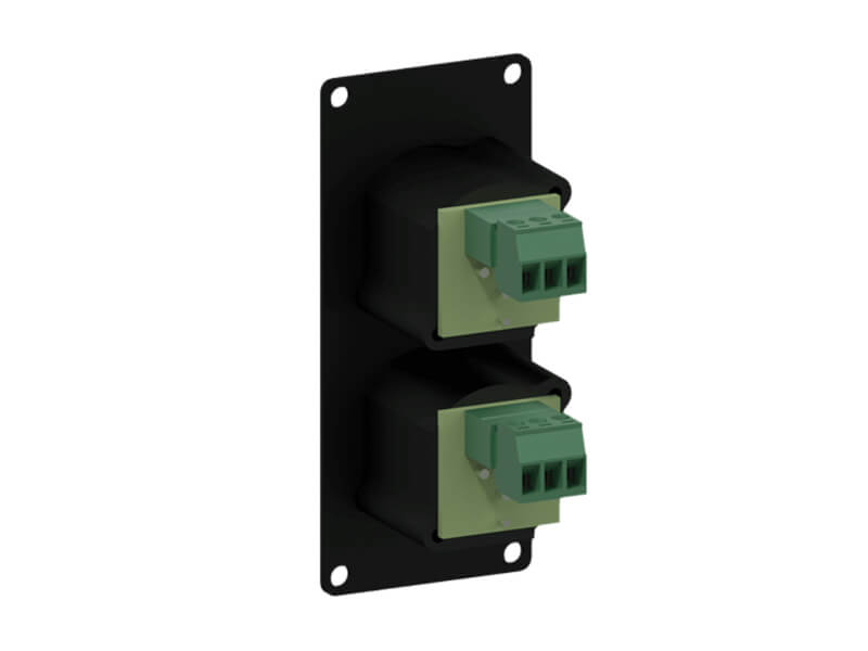 • Модуль с двумя разъемами XLR (папа) на передней стороне и клеммными колодками без пайки на задней стороне.