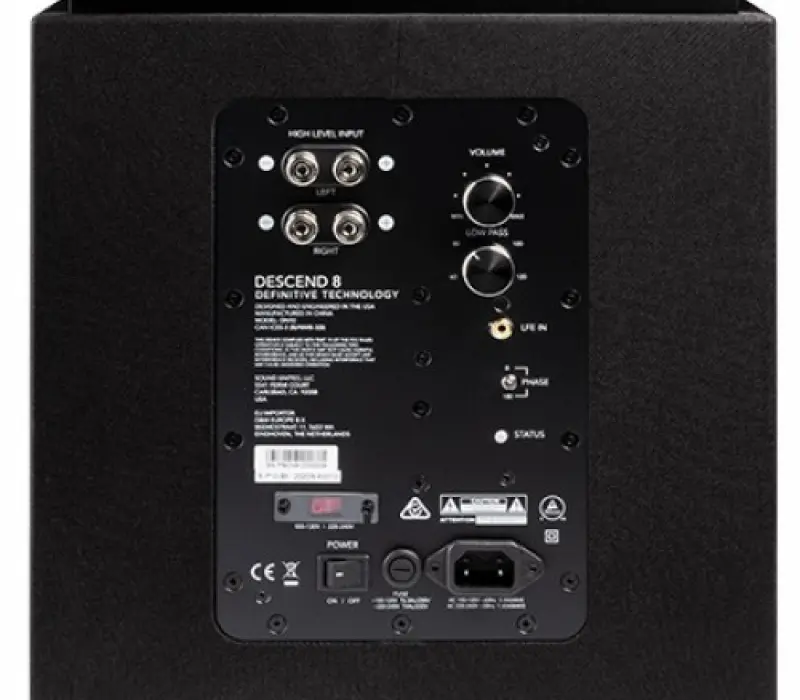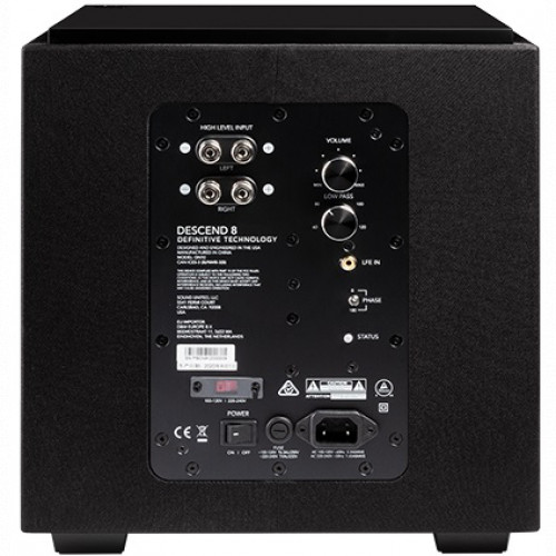 Descend DN8 от Definitive Technology – это компактный 8-дюймовый сабвуфер, обеспечивающий выдающееся воспроизведение баса для своих габаритов. Сконструированный, как и старшая модель DN12, на основе архитектуры 3XR ™ с двумя 8-дюймовый пассивными излучателями нагруженными на 8-дюймовый активный динамик, DN8 оснащен 500-ваттным усилителем класса D. Расположенные на задней панели органы управления позволяют производить регулировки громкости, менять настройки фильтра нижних частот и переключать фазу (0/180°).