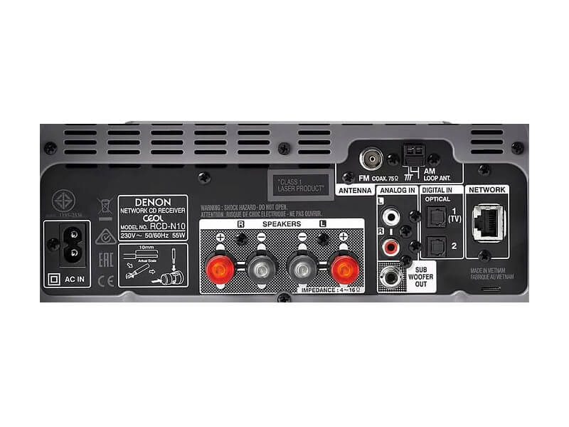 Встроенные усилители Denon RCD-N10 развивают выходную мощность 60 Вт на канал и этого более чем достаточно для полноценной раскачки небольших акустических систем.