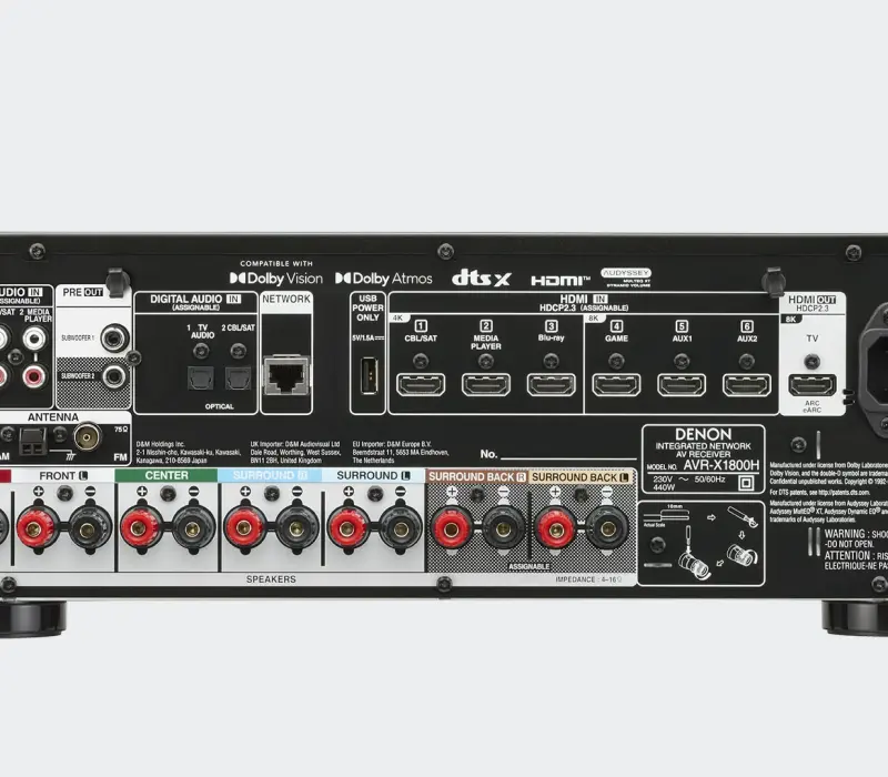 Почувствуйте каждое измерение в Dolby Atmos. Обновите свой домашний кинотеатр с конфигурацией 5.1.2 чтобы полностью погрузиться в 3D-звук контента Dolby Atmos. Dolby Surround upmixer задействует все колонки для создания ощущения 3D-звука из устаревшего контента. Технология Dolby Atmos Height Virtualization создает ощущение звука над головой даже без установленных верхних динамиков. Вы также можете наслаждаться музыкальными треками Dolby Atmos, доступными в Apple Music, Amazon HD и TIDAL, и на совместимом потоковом устройстве.