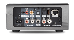 Корпус стерео предусилителя HEOS Link элегантно обрамлен стильными серебристыми вставками. Для удобства управления на боковой панели есть кнопки увеличения/уменьшения громкости и отключения звука.
