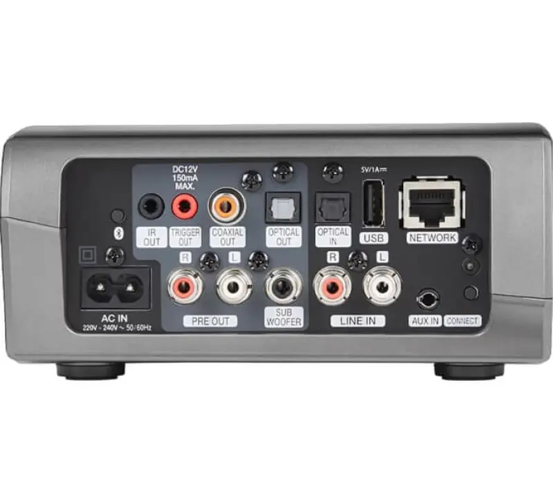 HEOS Link имеет встроенный двухдиапазонный беспроводной адаптер, обеспечивающий подключение к стандартным беспроводным сетям домашнего назначения (802.11 a/b/g/n/ac, 2.4 и 5 ГГц). Помимо беспроводного подключения HEOS Link также оборудован разъёмом RJ-45 для подключения к проводной сети Ethernet. USB порт позволит подключить портативный USB-накопитель, также вы можете использовать подключение по USB для зарядки ваших портативных устройств.