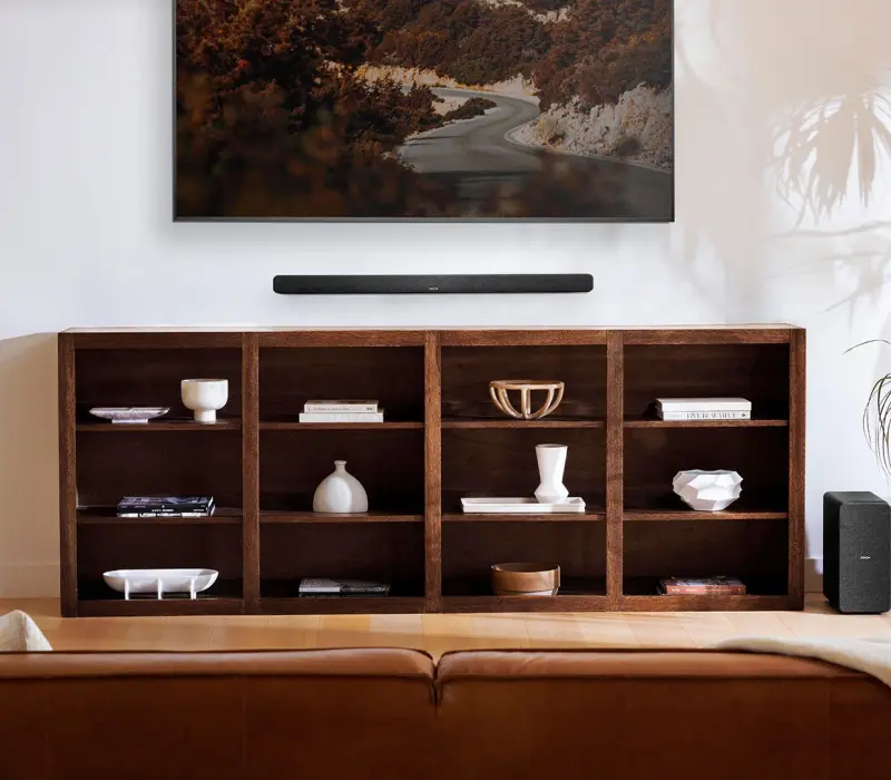 Трехмерный объемный звук с эффектом присутствия обеспечивается технологией Dolby Atmos и настройкой системы инженерами Denon. Наслаждайтесь мощными басами, кристально чистыми диалогами и обволакивающим трехмерным звуком в формате 3.1.2.