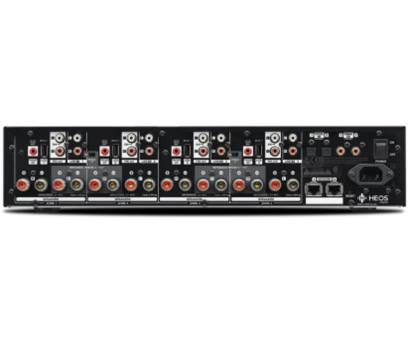 Акустические выходы оснащены винтовыми клеммами, совместимыми с разъемами типа "банан", так же есть 4 х 12В триггерных выходов . Heos Drive HS2 имеет бесшумный вентилятор охлаждения для долгосрочной, стабильной и надежной эксплуатации.