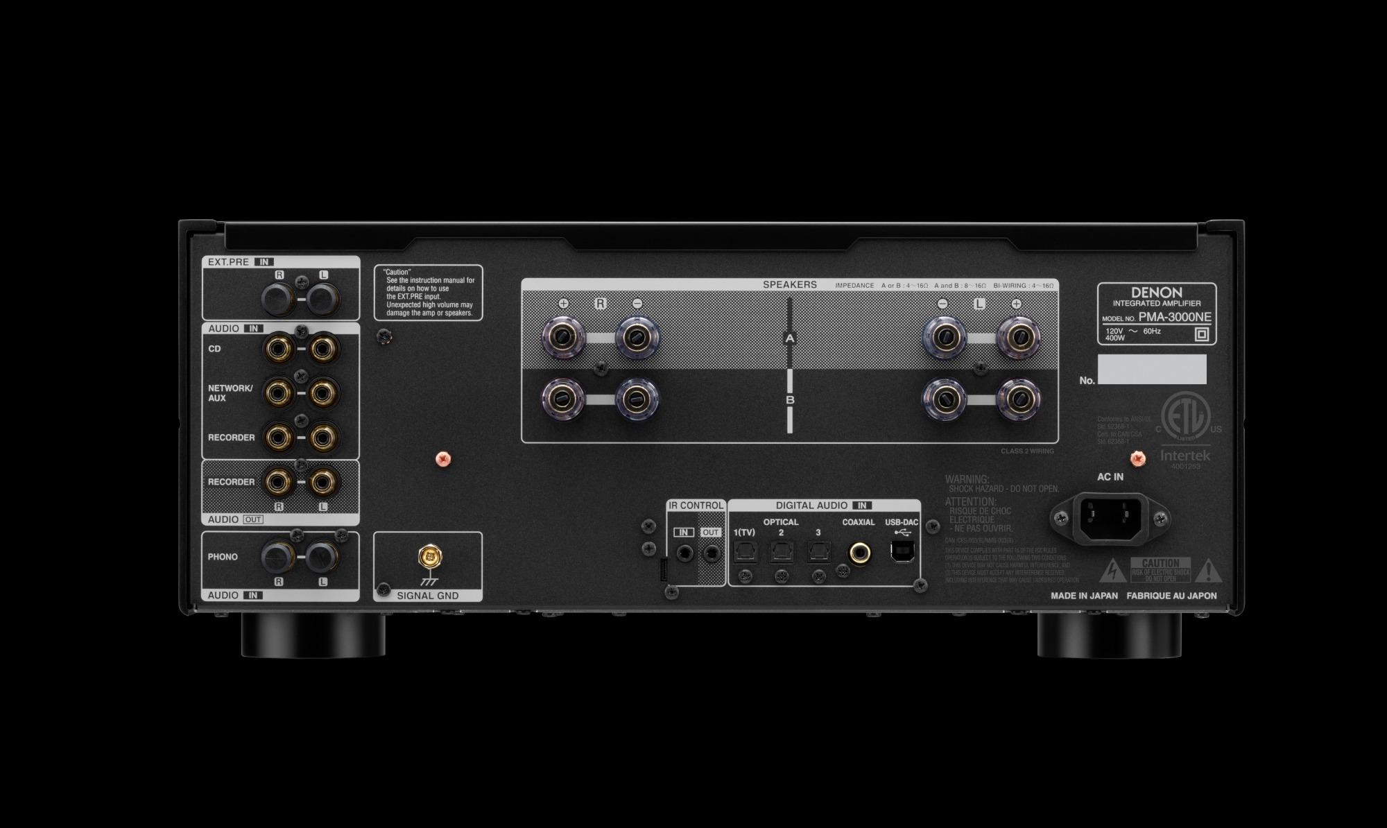 Универсальные цифровые разъемы PMA-3000NE, включая оптические, коаксиальные и USB Type B, поддерживают звук DSD до 384 кГц/32 бит и 11,2 МГц.