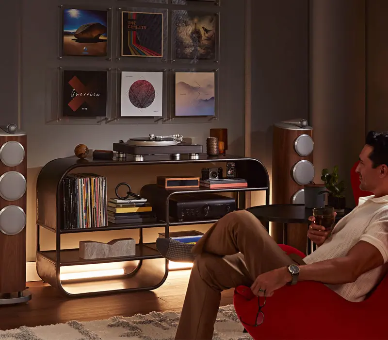 Прочная конструкция и крепкие регулируемые демпфирующие ножки обеспечивают стабильность, необходимую для воспроизведения детальной музыки без резонанса.
