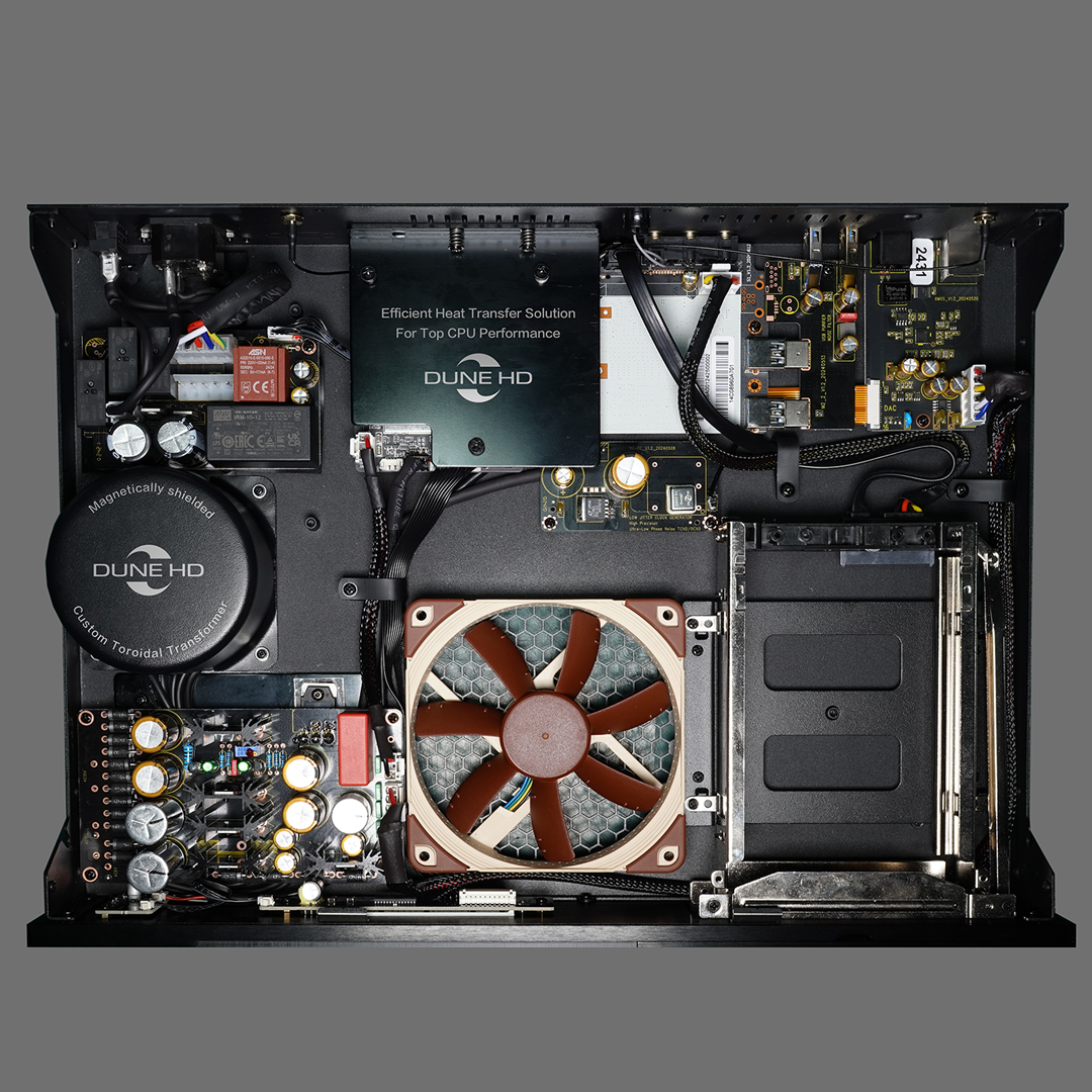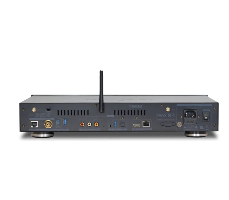 Полноразмерный премиальный 8K медиаплеер на новейшем процессоре Amlogic S928X-K/J с поддержкой Dolby Vision и HDR10+. Отсек для 3.5" HDD на виброизолированном шасси, память 8+64 ГБ, Wi-Fi 6, линейный блок питания, тактовый генератор TCXO для максимального качества сигнала на всех выходах, Hi-Fi цифровой аудиовыход на базе чипа XMOS.