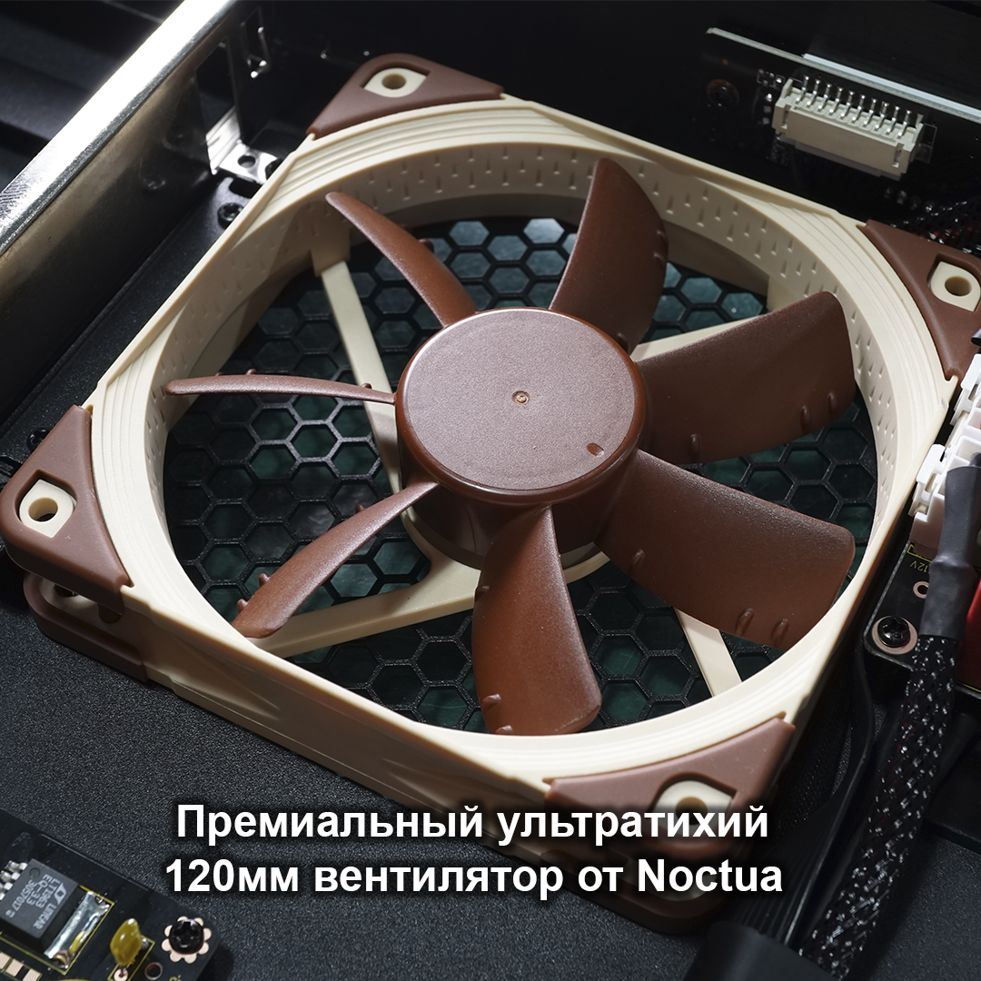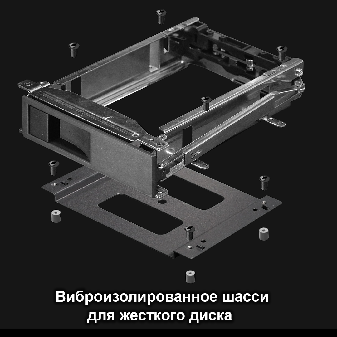 Полноразмерный корпус со стильной брашированной алюминиевой передней панелью. Отсек для 3.5” SATA жесткого диска на виброизолированном шасси, с поддержкой жестких дисков до 20 ТБ и более, с возможностью горячей замены. Доступ к жесткому диску также можно получить из локальной сети с помощью встроенного SMB файл-сервера.