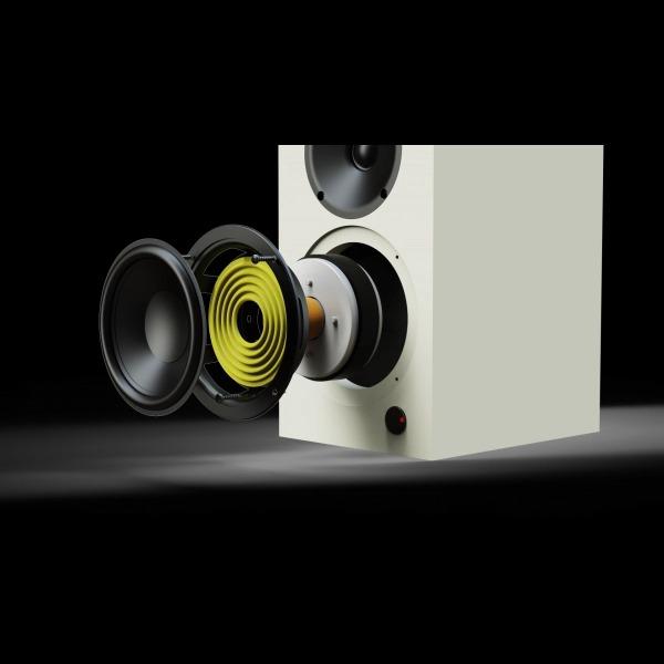 Низкочастотный динамик с длинным ходом и широкой окантовкой обеспечивает повышенную мощность для дополнительного расширения басов.
