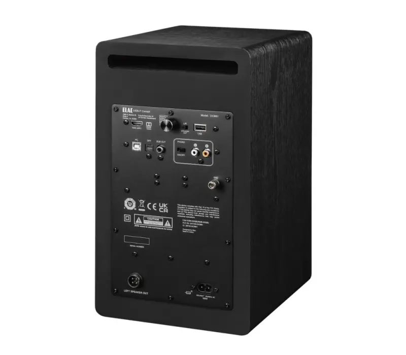ELAC DCB61 оснащен встроенным декодером Dolby Digital, гарантируя бесшовное подключение к телевизору, обеспечивая при этом аутентичный 2.1-канальный звук для действительно захватывающего прослушивания. Разработанный для легкой настройки и превосходного качества звука, DCB61 улучшает каждый момент глубокими басами, кристально чистыми диалогами и производительностью, заполняющей комнату.