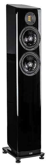 Сложная конструкция: отменно лакированные или отделанные натуральным шпоном корпуса трапециевидной формы слегка отклонены назад; алюминиевые и стеклянные детали.