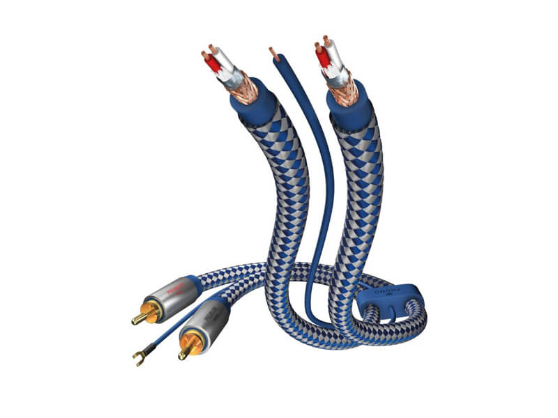 Фонокабель межблочный аудио, высококачественная бескислородная медь OFC, покрытие разъемов золотом 24К, диаметр 6 мм, 2 - кратное экранироваие,отдельный заземляющий кабель. Длина 0,75м. Производитель: Inakustik (Германия)