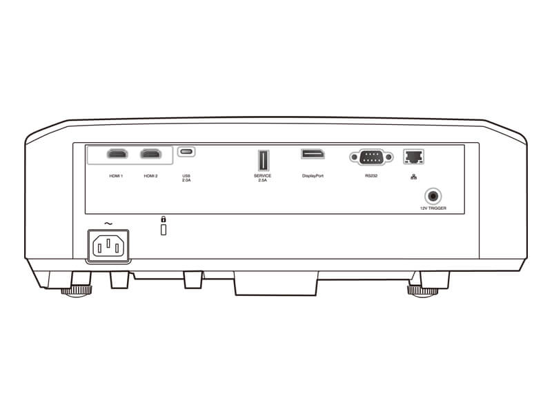 - Разъемы: вход Display Port, HDMI x2 с поддержкой HDCP2.3, USB Type C, USB Type A (питание 1,5 А), RS-232, LAN и триггер (12 В).