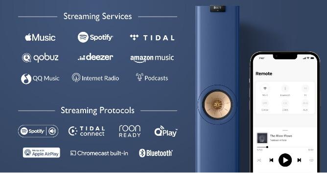 LS60 Wireless обеспечивает готовую беспроводную совместимость с Wi-Fi, Apple AirPlay 2, Google Chromecast и Bluetooth. С помощью приложения KEF Connect вы можете транслировать Amazon Music, Qobuz и Deezer или настраиваться на интернет-радио и подкасты. Вы можете использовать нативные приложения для потоковой передачи непосредственно из Spotify Connect, Tidal Connect и QPlay, и они совместимы с Roon*. LS60 Wireless также поддерживает потоковую передачу файлов PCM до 24 бит/384 кГц, а также декодирование DSD и MQA^, что позволяет воспроизводить аудиофайлы и потоки MQA, обеспечивая звук оригинальной мастер-записи.