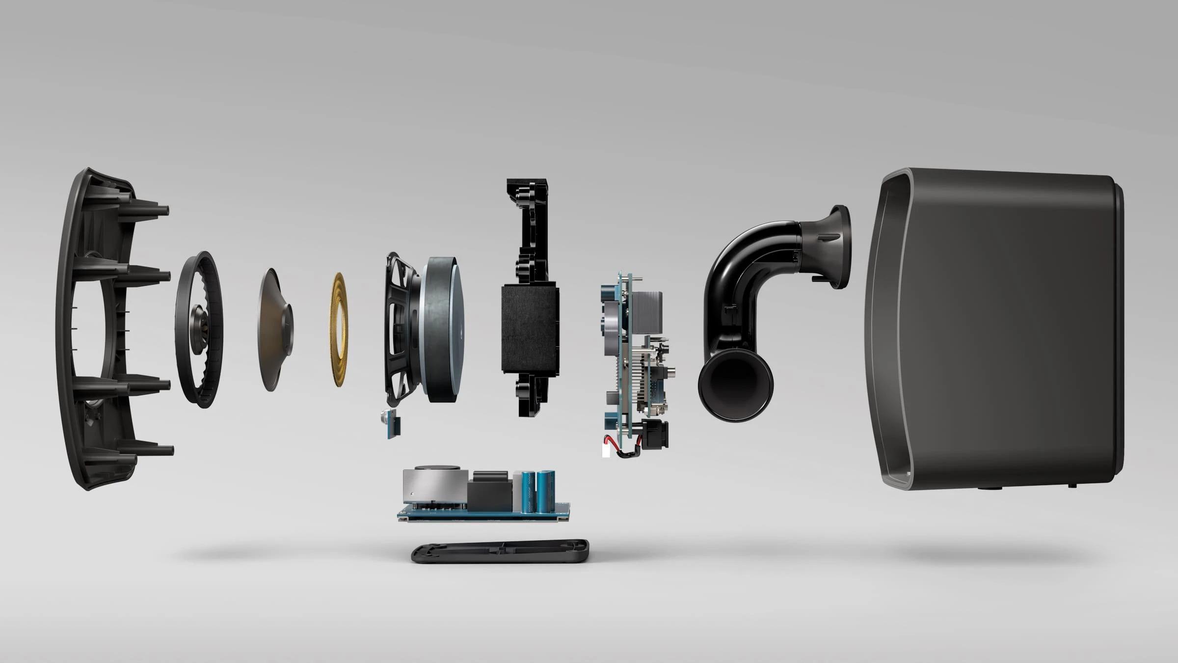 - Обеспечивает проводное подключение к телевизору, настольному компьютеру и другим устройствам через USB-C, HDMI ARC, оптический вход и выход на сабвуфер.