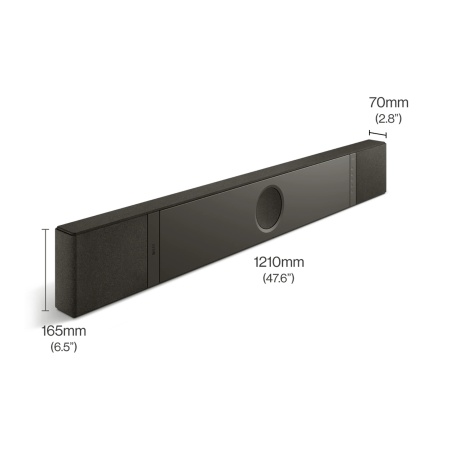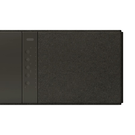 Саундбар с алюминиевой верхней панелью и водонепроницаемой тканью обеспечивает классический, но функциональный дизайн, подходящий для современных домов.