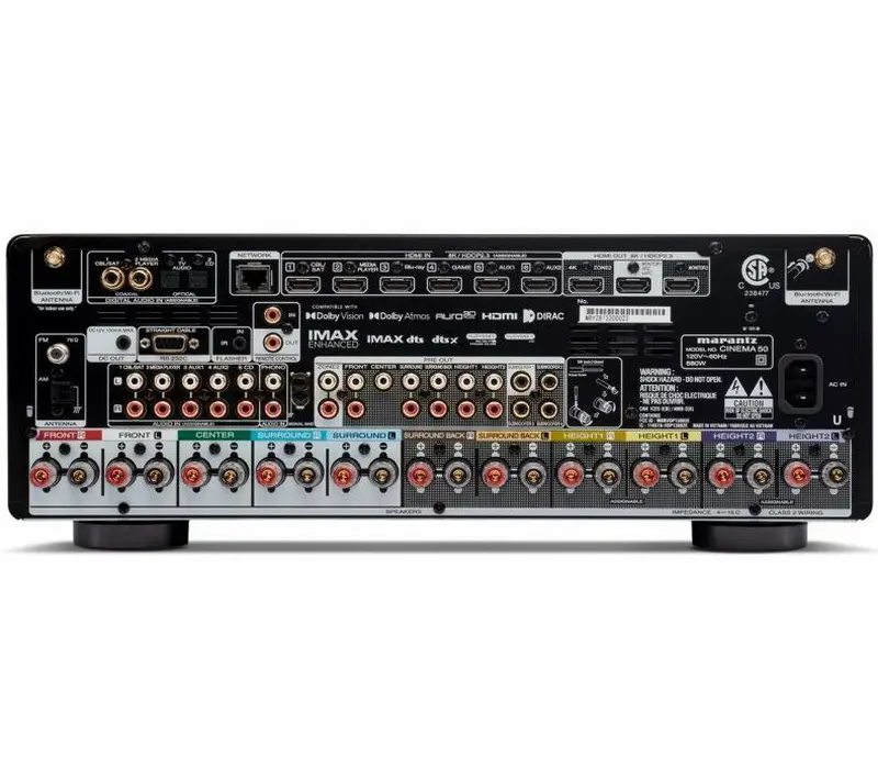 AV-ресивер высокого класса Marantz Cinema 50 имеет 9-каналов усиления звука и оснащен 11.4-канальным процессором для возможности дальнейшего расширения системы на его основе. Аппарат выполнен в массивном корпусе узнаваемого дизайна с шикарной внешней отделкой и антирезонансным шасси, защищающим его схемы от вибраций. Усилители в AV-ресивере построены на дискретных компонентах и обеспечивают значительный выходной ток, благодаря чему аппарат легко справляется даже со сложной акустикой.