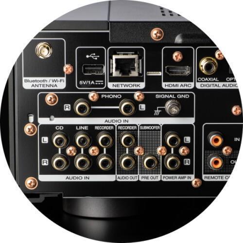 Полный набор аналоговых и цифровых входов, возможность воспроизведения музыкальных стриминговых сервисов и наличие HDMI делают прослушивание приятным и удобным независимо от источника.