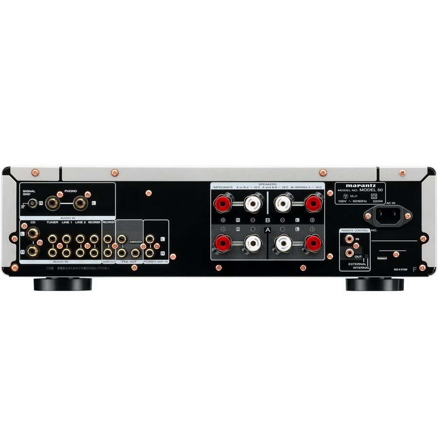 Marantz Model 50 оснащена фонокорректором, совместимым с картриджами ММ. Используя вход J-FET и добавляя пассивную сервосхему постоянного тока, мы устраняем конденсаторы связи по переменному току и улучшаем чистоту пути сигнала. Кроме того, при настройке звука используются высококачественные детали, такие как высококачественные пленочные конденсаторы с медной фольгой, которые также используются в моделях высокого класса, для достижения насыщенного аналогового звука.