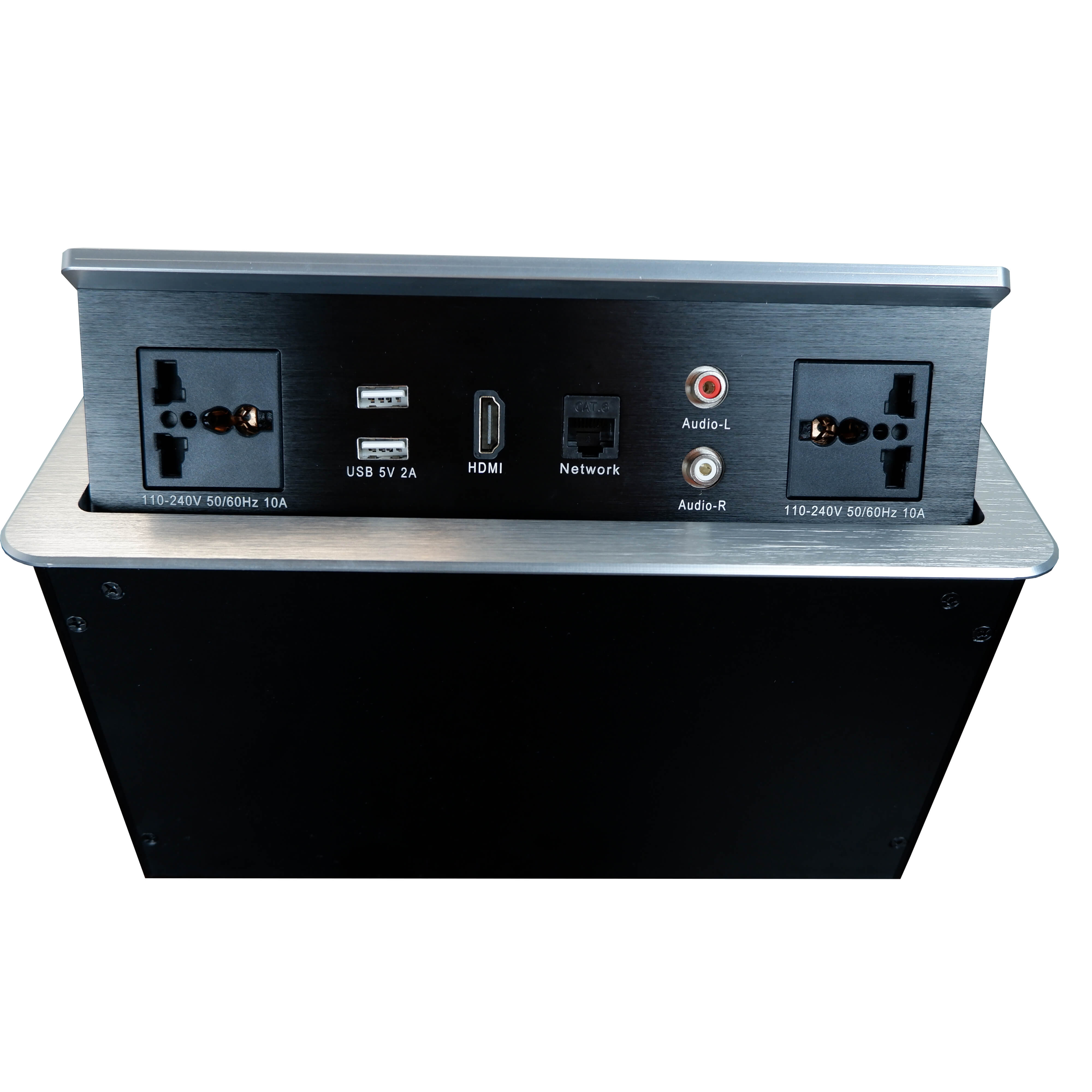 Настольный коммутационный лючок, с Push up механизмом открывания. Имеет разъем зарядного устройства 5V USB*2. Силовой кабель 3м в комплекте.