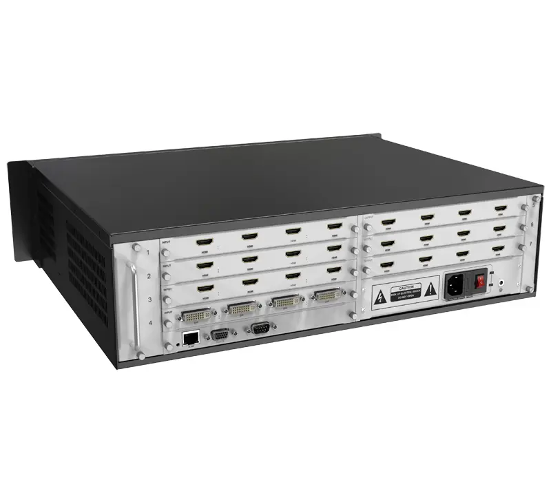 Предназначен для управления и распределения контента на видеостене, и позволяет единовременно выводить до 4-х источников , изменяя масштаб изображения и их расположение на видеостене. Процессор может комплектоваться входными платами , которые поставляются опционально отдельно. Эти платы могут быть VGA / DVI / HDMI. Выходные платы так же подбираются отдельно. Максимальная поддержка 16 входов 9 выходов или 20 входов 8 выходов, что позволяет получать гибкие настройки картинки.