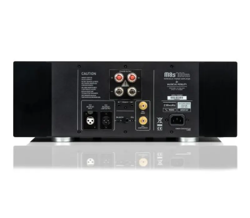 Коэффициент шума Musical Fidelity M8s-700M чрезвычайно низок и составляет 120 дБ. Мощность, низкие искажения и чрезвычайно низкий уровень шума способствуют его потрясающему, непринужденному звучанию. Musical Fidelity M8s-700M чрезвычайно мощный и динамичный. Звук приятный, чистый и не окрашенный. Динамика мощная и достигается с мгновенной скоростью, как при запуске, так и при остановке. Звуковая сцена Musical Fidelity M8s-700M огромна, широка и глубока. Он создает большое количество воздуха и пространства и является голографическим по своему представлению.
