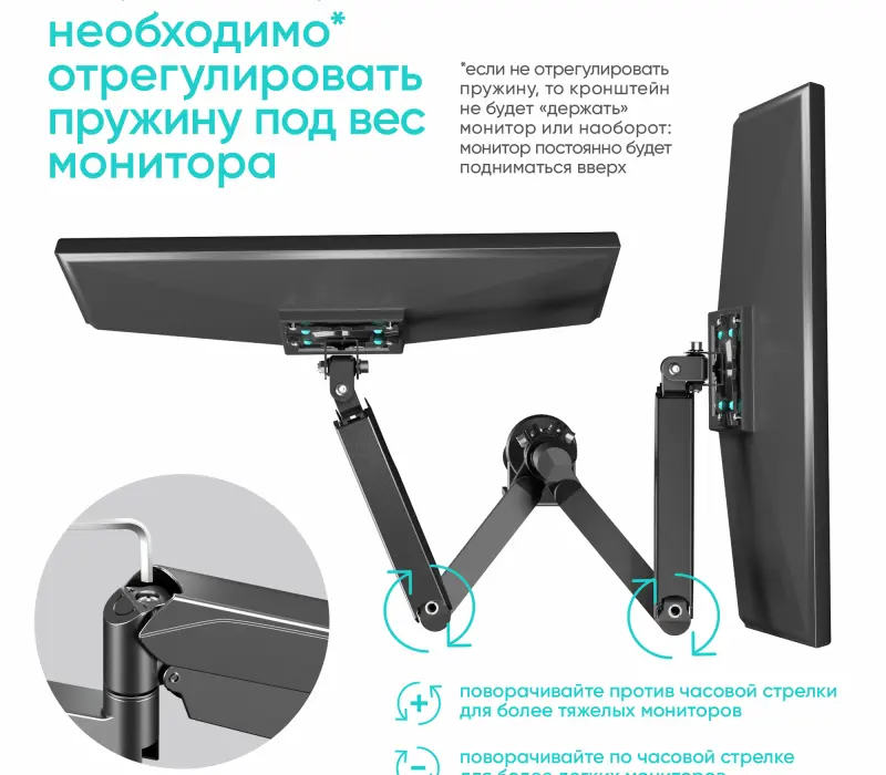 - плавную регулировку положения монитора без рывков и отскоков,