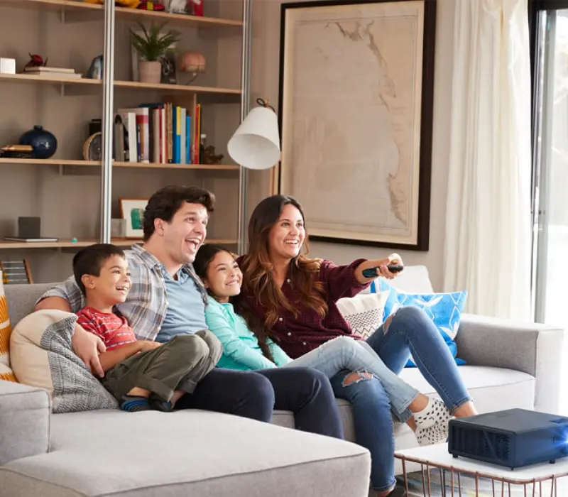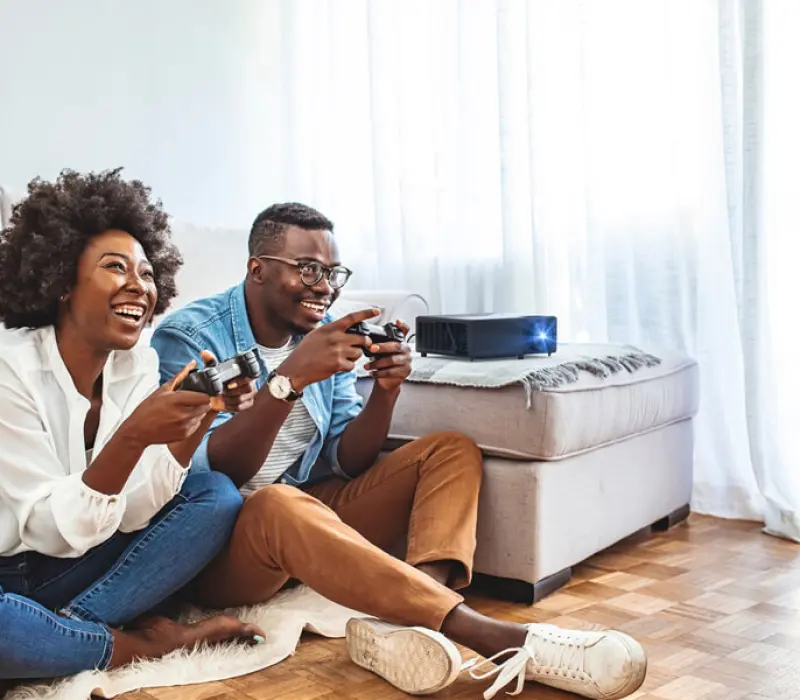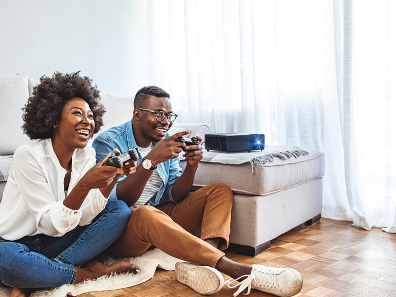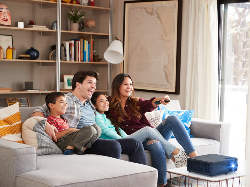 Этот универсальный проектор для домашних развлечений сочетает в себе высокую яркость и насыщенные цвета, создавая яркие, реалистичные визуальные эффекты в хорошо освещенных помещениях* - идеально подходит для просмотра телепередач, спортивных трансляций, фильмов или игр с семьей или друзьями в любое время суток.