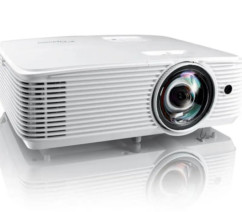 Благодаря короткофокусному объективу вы можете запроектировать впечатляющее изображение размером 100" на расстоянии всего в метр от проектора. Это позволяет размещать проектор ближе к стене, нивелируя при этом тень.