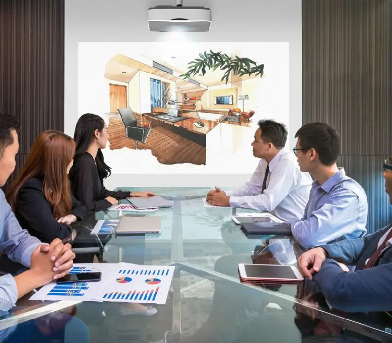С ультракороткофокусным объективом Вы можете проецировать впечатляющее изображение размеров 100”с расстояние менее чем метр. Это позволяет установить проектор ближе к стене, уменьшая тень. Идеально для интерактивных приложений.