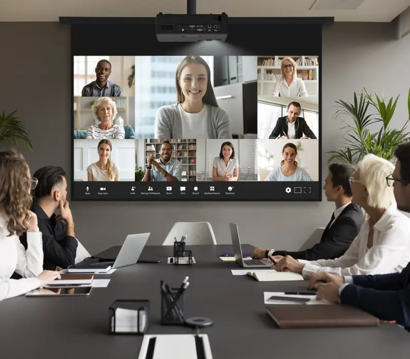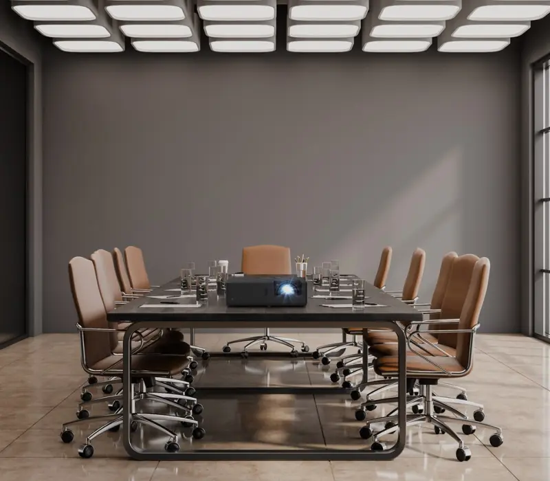 С короткофокусным объективом вы можете проецировать впечатляющее 100-дюймовое изображение с расстояния чуть более метра. Это позволяет вам разместить проектор ближе к стене, уменьшая тени, чтобы вы могли с легкостью проводить презентацию.