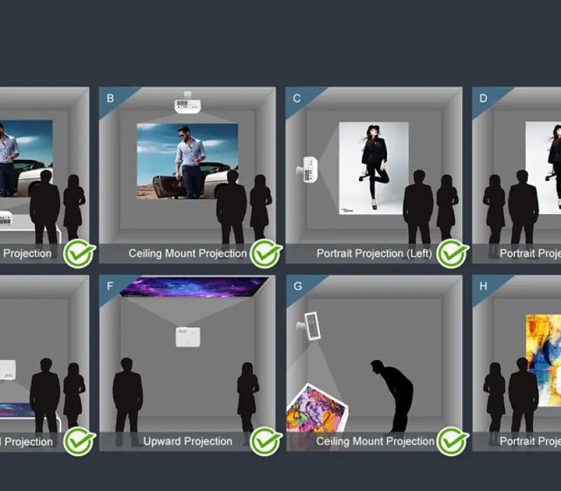 Изображение может проецироваться в полном диапазоне 360 градусов вдоль горизонтальной оси проектора.