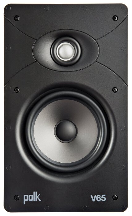 Низкочастотный динамик в Polk Audio V65 имеет диаметр 6,5 дюймов и оснащен легким и жестким полипропиленовым диффузором на подвесе из бутиловой резины. Мощная магнитная система обеспечивает линейное перемещение диафрагмы с большой амплитудой, что позволяет получить существенное звуковое давление в комнате средних размеров, а также глубокие и проработанные басы. Твитер в Polk Audio V65 оснащен 1-дюмовым шелковым куполом и установлен на поворотном держателе, который позволяет сориентировать его в нужном направлении. Динамики подключены к разделительному фильтру, который выполнен из компонентов повышенной надежности по простой схеме, и обладает минимальными искажениями при стабильном показателе импеданса. Для подсоединения входного кабеля в акустической системе предусмотрена пара нажимных позолоченных клемм.