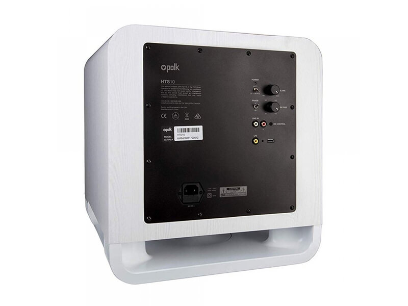 Polk Audio HTS SUB 10 оснащен стандартным набором настроек, в который входят регуляторы громкости и частоты настройки входного фильтра, а также переключатель абсолютной фазы. Сигнал может быть подан на стандартный линейный вход или на вход LFE –в последнем случае фильтр сабвуфера не используется и вся обработка производится в процессоре окружающего звучания. Также аппарат имеет триггерный вход для дистанционного управления включением.