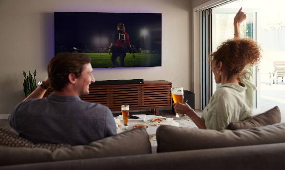 Настройте с любым телевизором через HDMI eARC или оптическое соединение (кабель HDMI входит в комплект). Интуитивно понятный OLED-дисплей на передней панели затемняется, когда он не используется. Roku TV Готов к простой настройке и управлению. Устанавливается на консоль телевизора или крепится на стену. Входящий в комплект пульт дистанционного управления работает с большинством телевизоров из коробки.