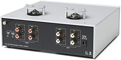 ММ/МС-фонокорректор с ламповым выходом на двух лампах ECC83 и возможностью подстройки параметров нагрузки: усиление 40, 45, 50, 60, 65 дБ, входной импеданс 47 кОм (ММ) или 10 Ом – 1000 Ом (МС), емкость; внешний источник питания, габариты 206x91x227 мм, вес 1,65 кг