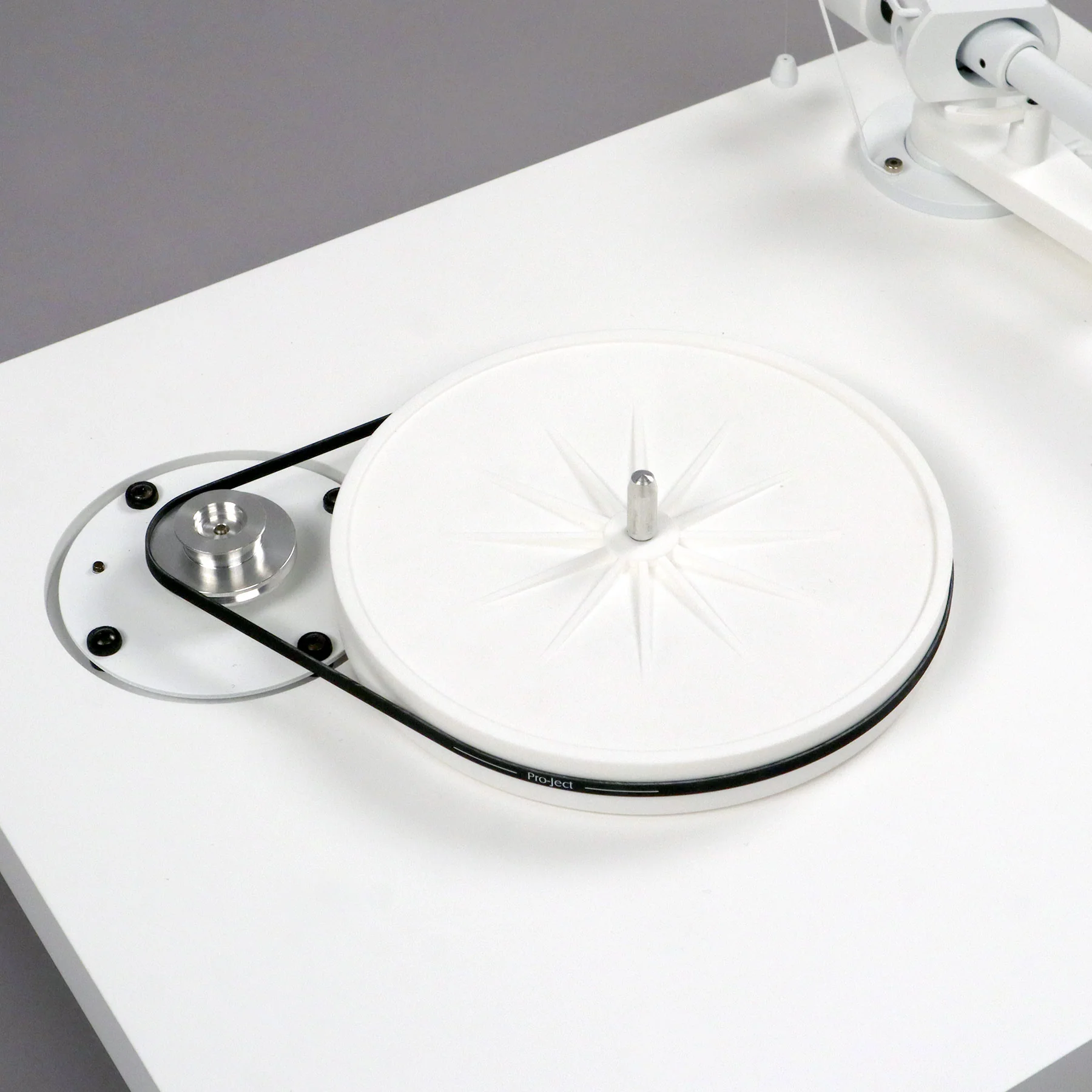 Debut PRO оснащен подвеской двигателя новой конструкции. Двигатель проигрывателя всегда вибрирует во время работы, что является естественной особенностью. Поскольку передатчик и наконечник являются очень чувствительными частями, передающими вибрации на динамики, нежелательные вибрации двигателя могут проявляться в виде слышимого механического шума. Поэтому очень важно последовательно отделять двигатель от шасси. Усовершенствованная многослойная технология с несколькими слоями демпфирования TPE в сочетании с большим весом является идеальным решением для эффективной подвески двигателя.