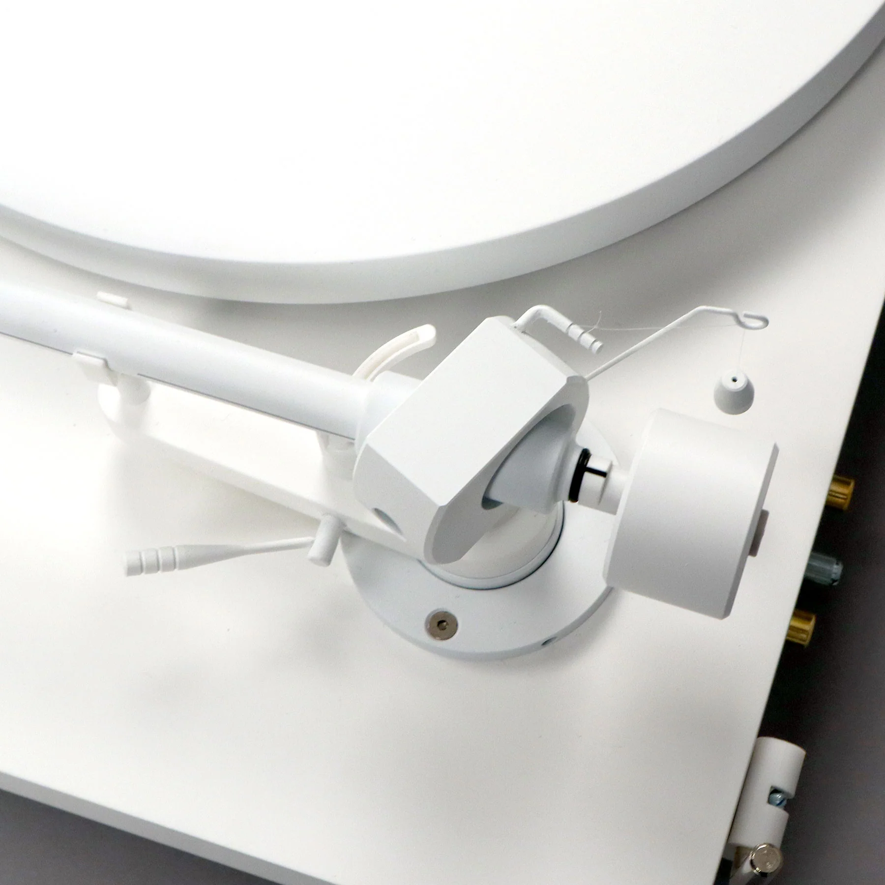 Кронштейн, установленный на поворотном столе Debut PRO, позволяет точно регулировать азимут и вертикальный угол обзора (VTA). Высоту рычага можно бесступенчато регулировать, ослабляя два регулировочных винта. Эти настройки дают возможность адаптировать руку к изменениям высоты, что расширяет возможности модернизации портативного устройства или использования различных накладок на проигрывателе.
