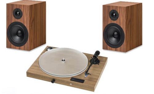 Готовый Hi-Fi комплект: виниловый проигрыватель с встроенными фонокорректором и усилителем мощности и полочная мониторная акустическая система