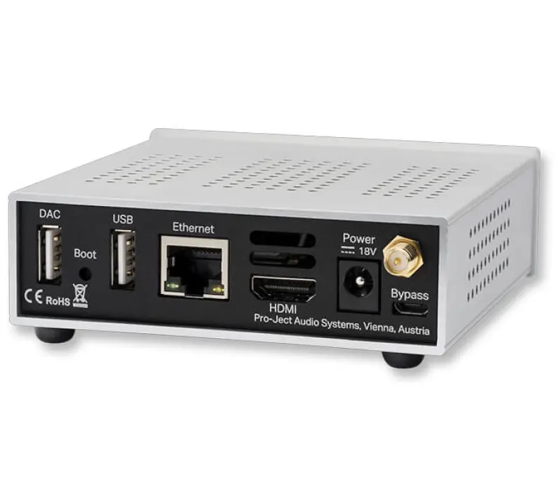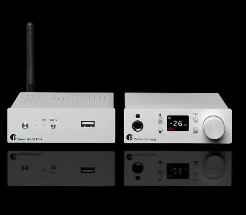 STREAM BOX S2 ULTRA – сетевой аудио проигрыватель класса high-end от австрийской компании Pro-Ject с возможностью подключения любого современного ЦАП с USB входом. Способен воспроизводить файлы до РСМ 32 бит/353 кГц и DSD256. Может осуществлять подключение по Bluetooth, USB, Wi-Fi и Ethernet через разъем RJ-45. Данный стример действует как сетевой мост высокого разрешения, это позволяет избежать проблем с поддержкой файлов. В STREAM BOX S2 ULTRA интегрирована поддержка основных потоковых сервисов, таких как Spotifi и Tidal, а Shoutcast позволяет слушать различные интернет-радиостанции. Предусмотрена поддержка мультирум до шести устройств.