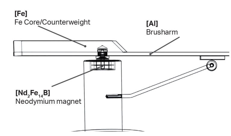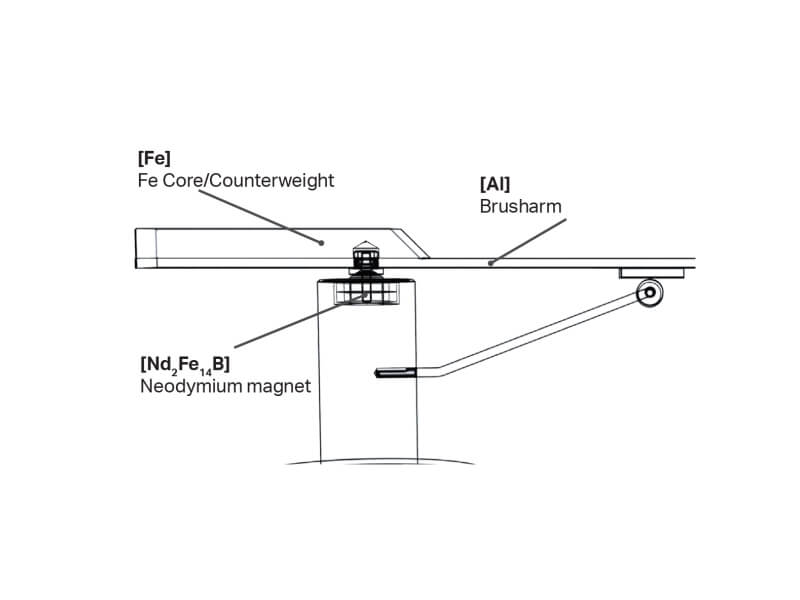 Магнитное притяжение между неодимовым магнитом, расположенным в верхней части цилиндра, и сердечником/противовесом стабилизирует щетку для пластинок. Кроме того, расстояние между неодимовым магнитом и сердечником / противовесом тщательно подобрано для обеспечения определенной силы магнитной стабилизации. Поскольку алюминий щетки является парамагнитным, он действует как дополнительное пространство между неодимовым магнитом и сердечником / противовесом.Sweep it S2 регулируется по высоте в диапазоне около 1 см. Положение можно зафиксировать с помощью установочного винта на основании. С помощью этого механизма можно регулировать высоту рычага метлы для записи, чтобы выровнять его по горизонтали с диском. Правильное горизонтальное выравнивание обеспечивает правильное прижимное усилие около 6g.Гибкое размещение