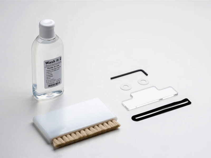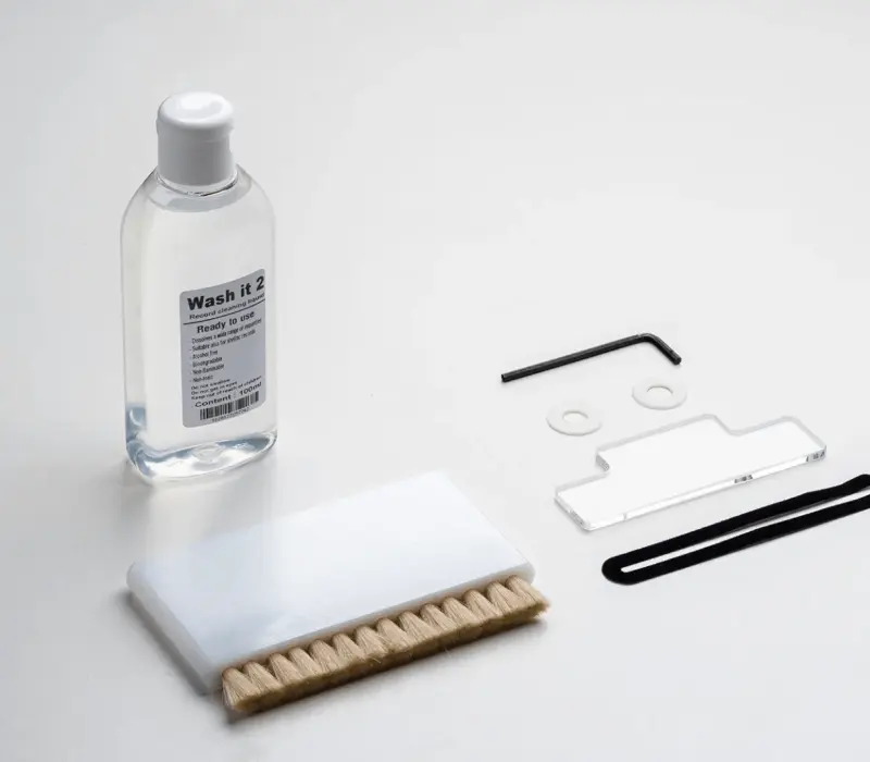 Для идеальной очистки нам также нужна подходящая чистящая жидкость. Спиртовые чистящие жидкости могут разрушить музыкальную микроинформацию канавок. Именно поэтому мы разработали нашу новую экологически чистую безалкогольную чистящую жидкость под названием «Wash it 2». Наш новый Wash it 2 представляет собой предварительно смешанную жидкость, поэтому вам больше не нужно разбавлять концентрат самостоятельно. Это предотвращает случайное использование неподходящей водопроводной воды для смешивания. С Wash it 2 мы снова можем оптимизировать эффективность уборки. VC-E2 очень мощный и полностью очищает пластинки за один-два оборота.