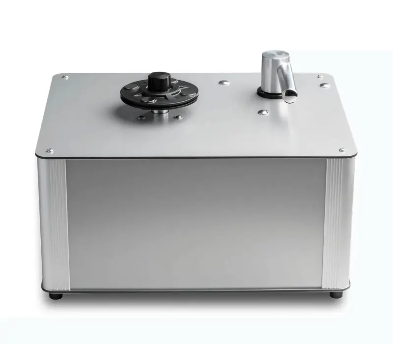 Новый магнитный зажим не только защищает этикетку от очищающей жидкости, чтобы избежать повреждения этикетки, но и ускоряет весь процесс очистки. Поместите свою пластинку в машину, наденьте зажим, и вы готовы к работе — больше не нужно утомительно завинчивать зажим. Прочный и простой в использовании металлический рычаг механически стабилен и сосредотачивает всю мощность всасывания непосредственно на поверхности пластинки. В сочетании с новой самоклеящейся полоской на руку ваши пластинки идеально очищаются. Большой внутренний контейнер (2,5 литра) собирает использованную жидкость и легко опорожняется. При использовании очищающего раствора Wash it 2 жидкость также будет испаряться в контейнере, а это означает, что контейнер почти никогда не нужно опорожнять даже после очистки тысяч пластинок. Он показывает заправочную емкость и гарантирует отсутствие пролива использованной чистящей жидкости. Новый VC-S3 изготовлен в Европе из высококачественных материалов и отличного качества сборки. Обладая множеством практических функций и отличным механическим управлением, VC-S3 эффективно сочетает в себе привлекательность промышленного дизайна с простым решением для получения великолепного звука с ваших виниловых пластинок.