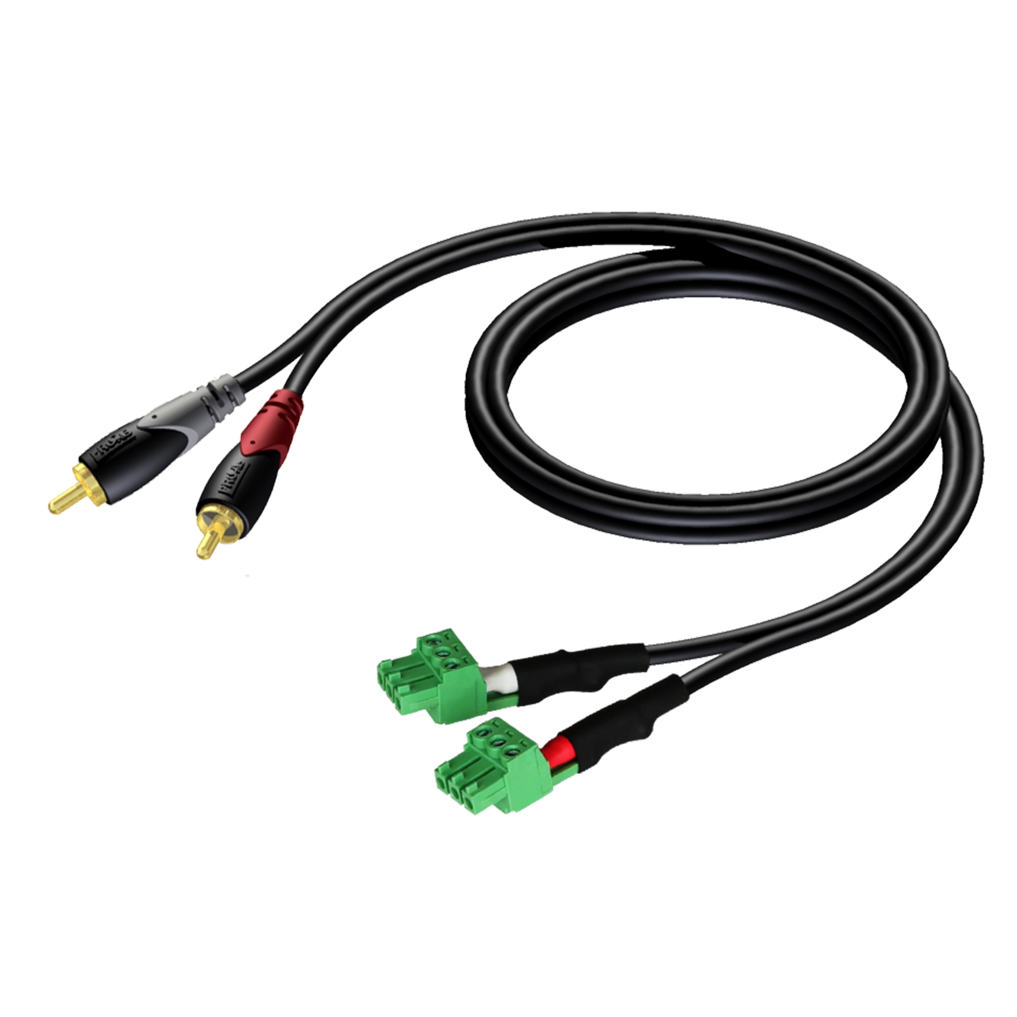 Этот кабель с разъемами клеммной колодки специально разработан для упрощения установки стоек и ускорения выполнения сложных монтажных работ. Этот сигнальный кабель оснащен пластиковой ручкой для удобного подключения и отключения. Он оснащен разъемами 2 x RCA/Cinch и 2 клеммными колодками (3-полюсная клеммная колодка с шагом 3,81 мм). Этот кабель можно использовать для подключения линейного сигнала. Примерами оборудования, использующего такие соединения, являются матрицы и усилители аудиобренда AUDAC.