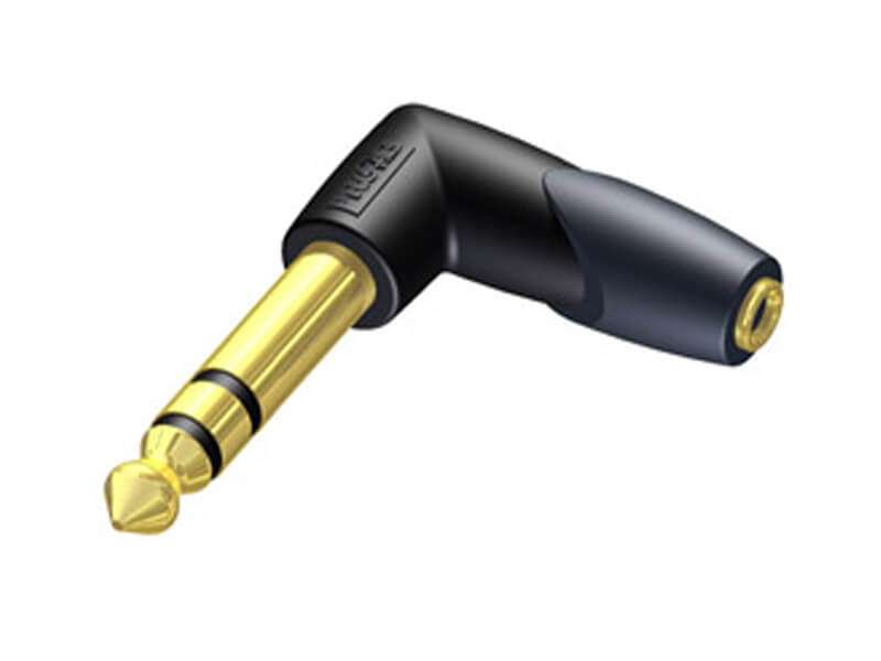 CLP205 – угловой переходник серии Classic с разъемами mJack 3.5 мм стерео (розетка)- Jack 6.3 мм стерео (вилка), позолоченные контакты.