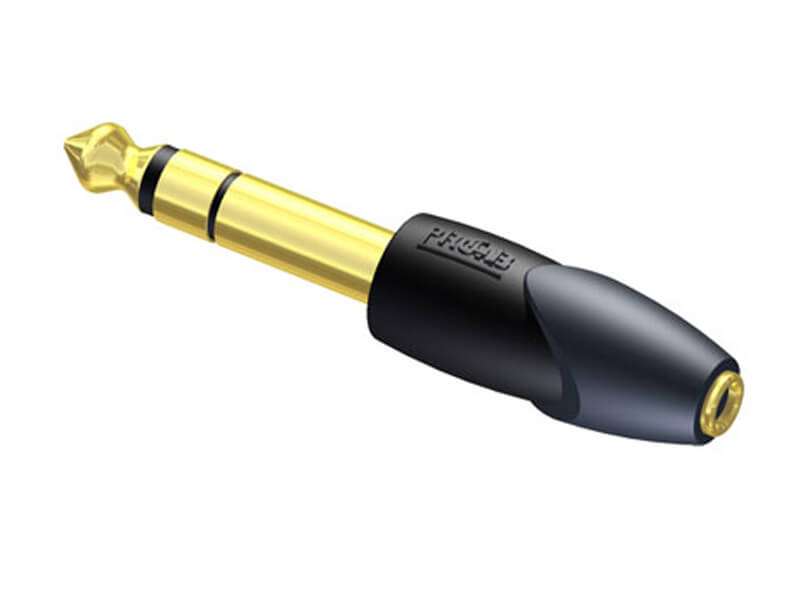 PROCAB CLP206 - переходник для стереофонического аудио сигнала с разъемами Jack 6.3 мм стерео (вилка) - mJack 3,5 мм стерео (розетка), позолоченные контакты.