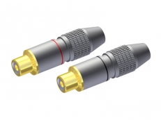 Коннекторы RCA под пайку (мама). Позолоченные контакты. Поставляется парами - один с красной полосой, другой с черной полосой. Производитель: PROCAB (Бельгия).