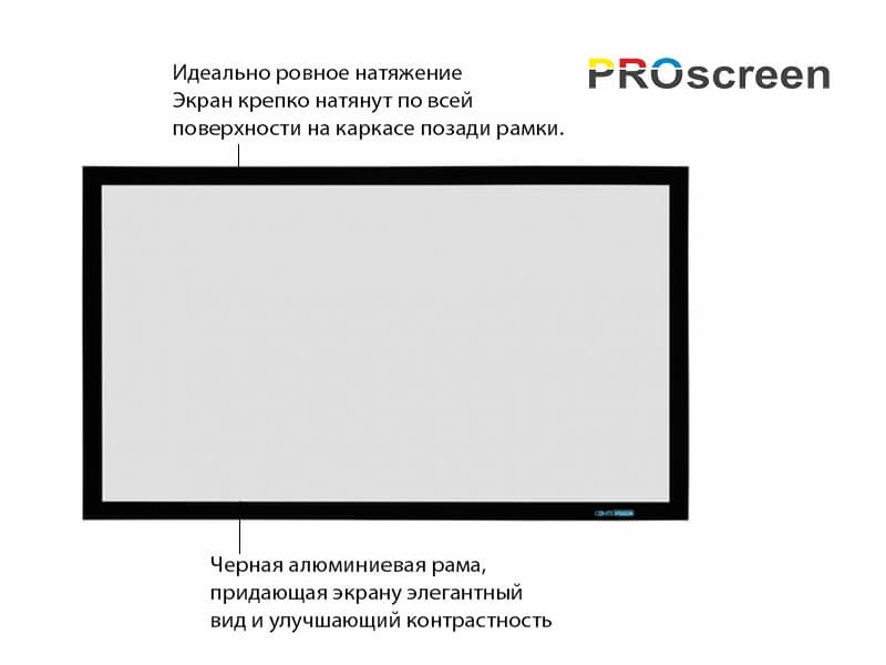 Натяжной экран на фиксированной раме PROscreen FСF9092 обладает идеально ровной поверхностью, обеспечивающей идеальное качество картинки.